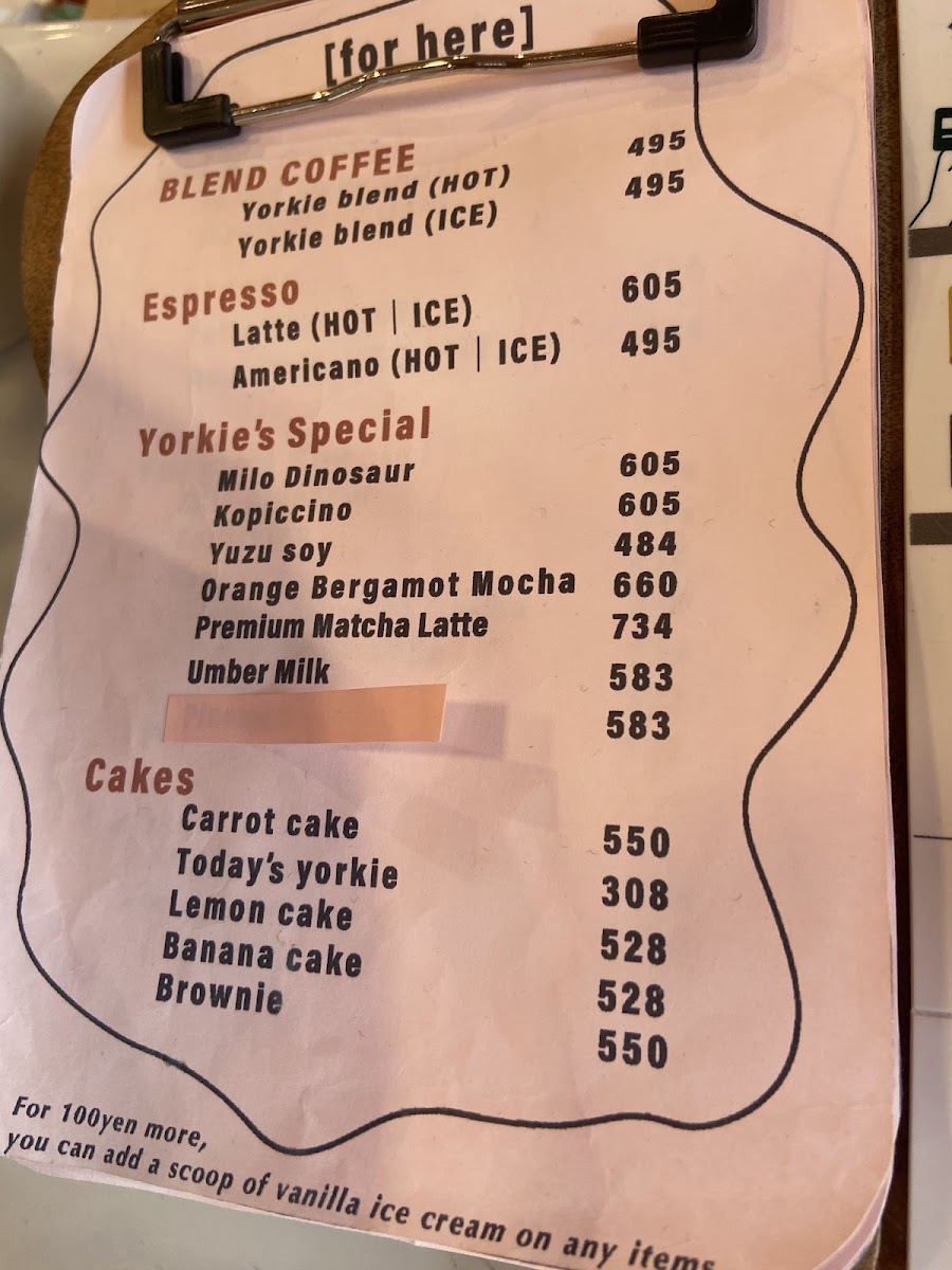 YORKIE COFFEE Menu